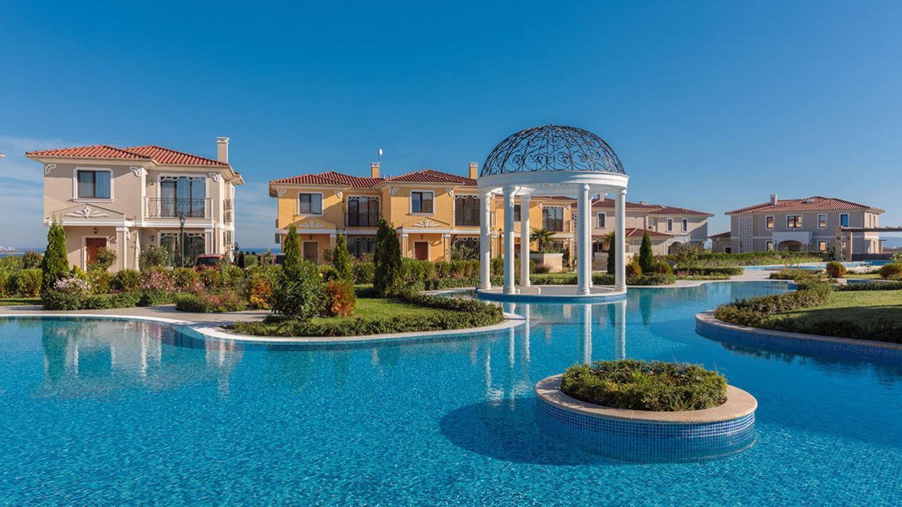 Die Anlage befindet sich nur 1 km vom Meer entfernt, sodass Sie jederzeit den Meerblick und die frische Luft genießen können. Gleichzeitig können Sie dank der abgeschiedenen Lage der Wohnanlage die großen Menschenmengen, insbesondere in der Feriensaison, vermeiden. Die Anlage verfügt über eine ausgezeichnete Infrastruktur, darunter mehrere Swimmingpools, Sport- und Kinderspielplätze, ein Restaurant, eine Kirche sowie gepflegte Grün- und Blumenflächen. So haben Sie jederzeit zahlreiche Möglichkeiten für Aktivitäten im Freien und zur Erholung direkt im Komplex.