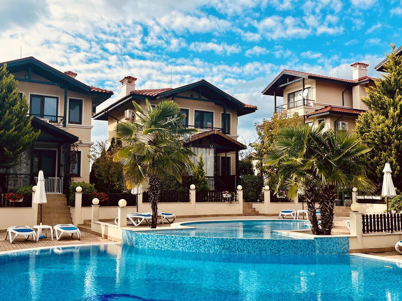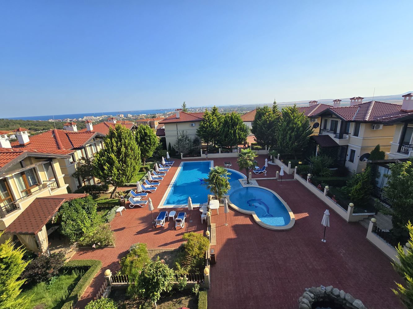 Das dreistöckige Haus in einem Komplex in der Region Sonnenstrand verfügt über eine Reihe attraktiver Merkmale, die es ideal für ein komfortables und luxuriöses Leben machen. Der Komplex liegt am Südhang des Stara-Planina-Gebirges. Von hier aus können Sie einen unglaublichen Blick auf die Bucht, die Küste und die antike Stadt Nessebar genießen. Diese Gegend ist einzigartig mit ihrem Mikroklima, da es eine Mischung aus Berg- und Meeresluft gibt, die Luft immer sauber und frisch ist und die Meeresbrise für Abkühlung sorgt.