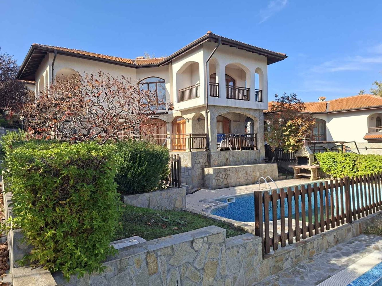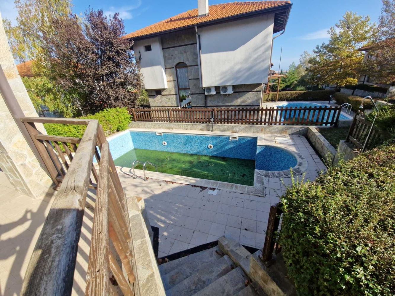 Zum Verkauf steht ein freistehendes zweistöckiges Haus mit Kamin, privatem Pool und Parkplatz in einer gepflegten, ruhigen Anlage in Aheloy.