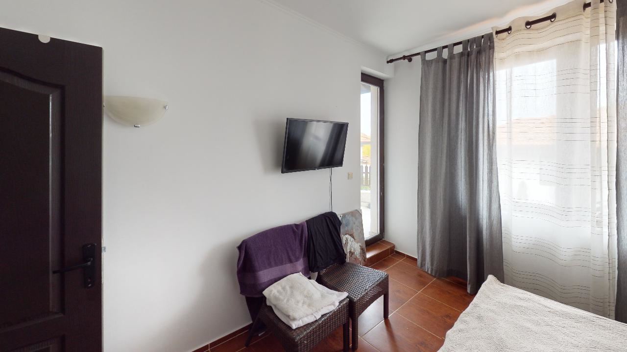 Ein zweistöckiges Reihenhaus in einer ökologischen Wohnanlage, gelegen in der Urlaubszone von Sonnenstrand am Fuße des Balkangebirges, ist ein einzigartiger Ort zum Leben, der Komfort und natürliche Schönheit vereint. Das Haus selbst hat eine Gesamtfläche von 117 Quadratmetern und erstreckt sich über zwei Etagen, mit Zugang zu einem eigenen Garten. Das geräumige Wohnzimmer mit Küchenzeile schafft einen gemütlichen Raum für familiäre Abendessen und Empfänge von Gästen. Die drei Schlafzimmer bieten ausreichend Platz zum Leben und Entspannen. Drei Badezimmer mit Toiletten tragen zum täglichen Komfort bei. Die Veranda und die Terrasse mit Blick auf die umgebende Natur ermöglichen es Ihnen, die frische Luft und die schöne Landschaft zu genießen. Die Wohnanlage, in der sich das Haus befindet, ist ganzjährig geöffnet und gewährleistet die Sicherheit der Bewohner durch ein Sicherheitssystem und eine rund um die Uhr Videoüberwachung. Auf dem Gelände gibt es zwei große Außenpools zum Entspannen, ein Spa-Center zur Erholung, ein Café und ein Gourmetrestaurant. Für Kinder gibt es einen Spielplatz und für Autobesitzer steht ein Parkplatz zur Verfügung. Das Haus wird mit allen vorhandenen Möbeln und Geräten verkauft, was es bereit für ein komfortables Leben macht. Dies ist das ideale Zuhause für diejenigen, die die Natur, den Komfort und die Sicherheit schätzen, die von einem modernen Wohnkomplex geboten werden.